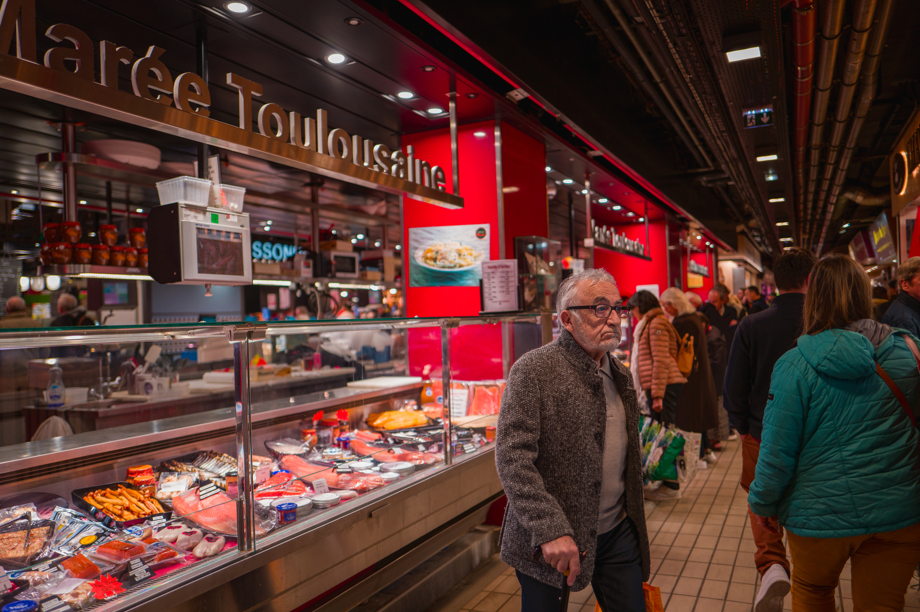 EN: Opened in 1896 and rebuilt in the 20th century, the Marché Victor Hugo remains the beating heart of Toulouse’s culinary life. Generations of vendors and customers gather here daily, weaving together tradition and modernity. With its vibrant red stalls and overflowing counters, it reflects both the city’s history and its ongoing passion for gastronomy.
